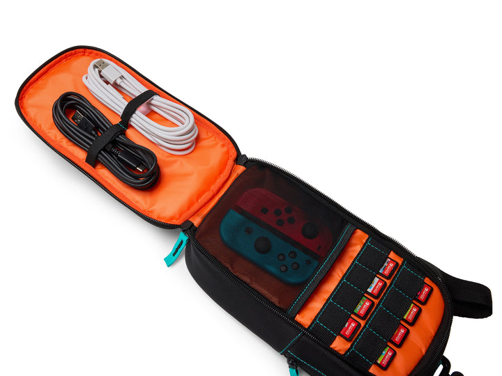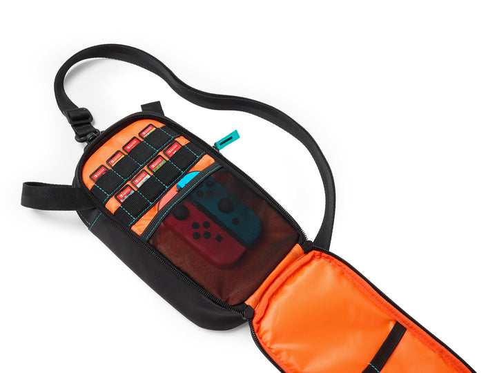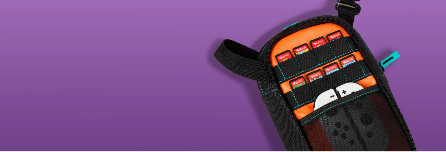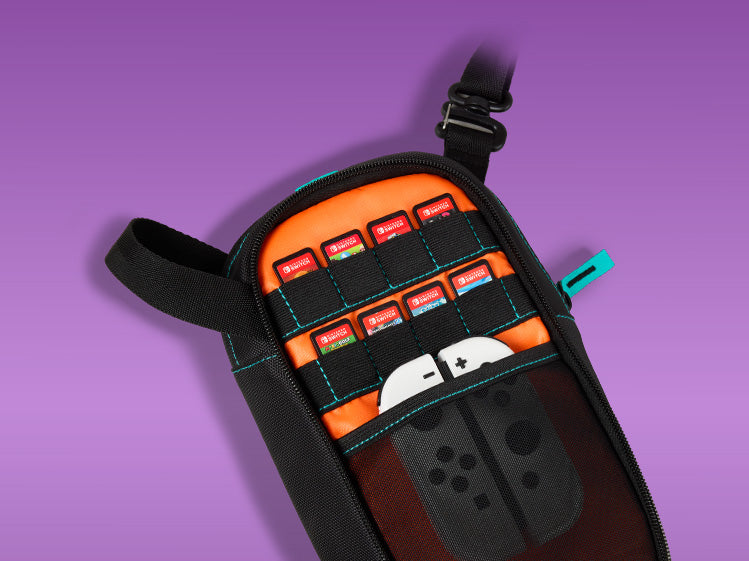 The officially licensed PowerA Crossbody Bag for Nintendo Switch is ideal for gaming on the go. This versatile bag can be used crossbody, sling, or chest-carry to suit nearly any activity. The soft tricot-lined padded pocket protects your Nintendo Switch from impacts and scratches, and an accessory compartment features slots for up to 8 game cards and straps to hold up to 2 extra Joy-Con. With a zipper pocket for a wallet or phone, the Crossbody Bag is all you need to head out for adventure.