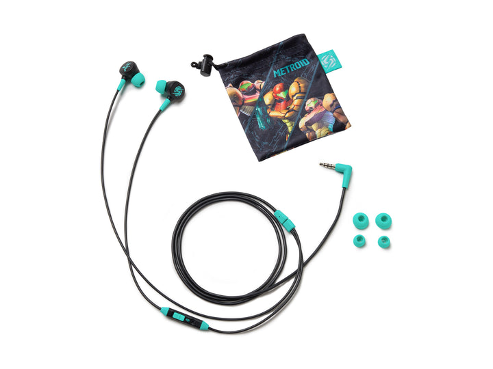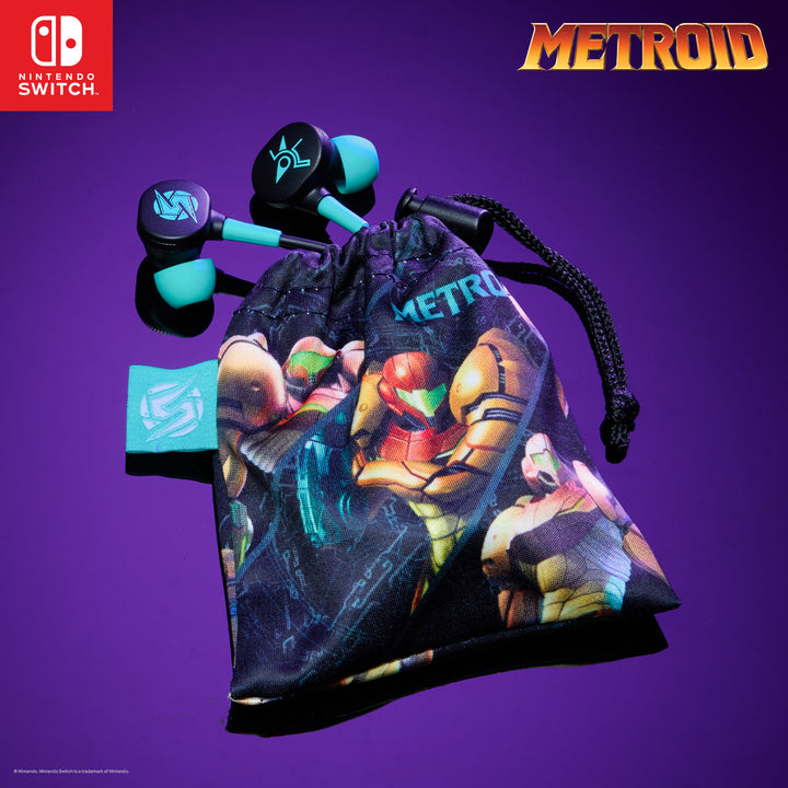 The PowerA Wired Earbuds for Nintendo Switch are licensed and sport original designs featuring your favorite video game characters. These wired earbuds are equipped with 8 mm dynamic speaker drivers and have an in-ear design with 3 swappable tips. It connects through the 3.5 mm port on the Nintendo Switch and has an Inline Mic for communication in compatible online games. The adjustable slider keeps your earbuds looking neat when not in use and the drawstring bag lets you store and protect them.
